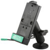 The RAM-B-138-GDS-DOCK-V1U consists of a 2.5″ diameter round base with the universal AMPS hole pattern, double socket arm, diamond adapter base and the RAM Universal Vehicle Phone Dock with GDS Technology. This mount can drill down to any hard surface and is suitable for rough environments and vehicle dashboards. The adjustment points at both ends of the double socket arm allow for almost infinite adjustment and perfect viewing angles. The vehicle dock is a spring loaded, quick release cradle that offers a secure fit with easy access to the mounted phone or phablet; compatible with any phone or phablet wrapped in IntelliSkin. The integrated GDS Technology platform enables charging of the mounted device and safely secures the phone in a variety of vibration application. Without the need to remove the IntelliSkin from the device, the user can quickly and efficiently mount the device in the vehicle dock and keep the device charged.
