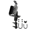 The RAM-B-174-DEL1 consists of a double socket arm, hardware for mounting to both brake/clutch reservoirs and rails that are 0.5″ to 1.25″ in diameter, diamond adapter base and custom high strength composite cradle for the Delorme Earthmate. Designed into the mount is a 1″ diameter patented rubber ball and socket system with adjustment points at the base and cradle. With a twist of the arm knob, you can move the Delorme Earthmate motorcycle mount to your optimum viewing position. The mounting hardware for brake/clutch reservoirs include both standard and metric mounting bolts.