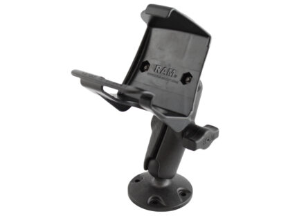 The RAP-B-138-GA9U consists of a 2.5″ diameter round base with the universal AMPS hole pattern, double socket arm, diamond adapter base and high strength composite cradle. The mount is designed with a RAM 1″ diameter patented rubber ball and socket system that has adjustment points at both ends of the double socket arm; this allowing for almost infinite adjustment and perfect viewing angles.