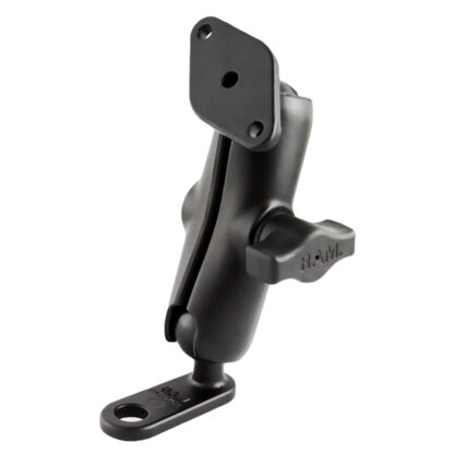 The RAM-B-179 consists of a 1″ diameter ball base, connected to a 2.25″ x 0.875″ base with 11mm hole, double socket arm and diamond base adapter. This mount is often used on motorcycles, attaching to the mirror frame, most commonly found on BMW motorcycles. as well as many handlebar pinchbolts with a washer (base is 5mm thick). The 2.43″ x 1.31″ diamond base contains two holes 1.912″ from center to center, matches the industry standard AMPS hole pattern and will connect to a large variety of RAM Mount and third party cradles. The mount is designed with a RAM 1″ diameter patented rubber ball and socket system that has adjustment points at both ends of the double socket arm; this allowing for almost infinite adjustment and perfect viewing angles.