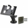 The RAM-B-138-GA57-225BU consists of a double socket arm, 2.5″ diameter round base with the universal AMPS hole pattern, diamond adapter base, custom high strength composite cradle and steel backer plate for the listed compatible Garmin nuvi series. Designed into the mount is a 1″ diameter patented rubber ball and socket system with adjustment points at the base and cradle. With a twist of the arm knob, you can move the flat surface nuvi mount to your optimum viewing position.