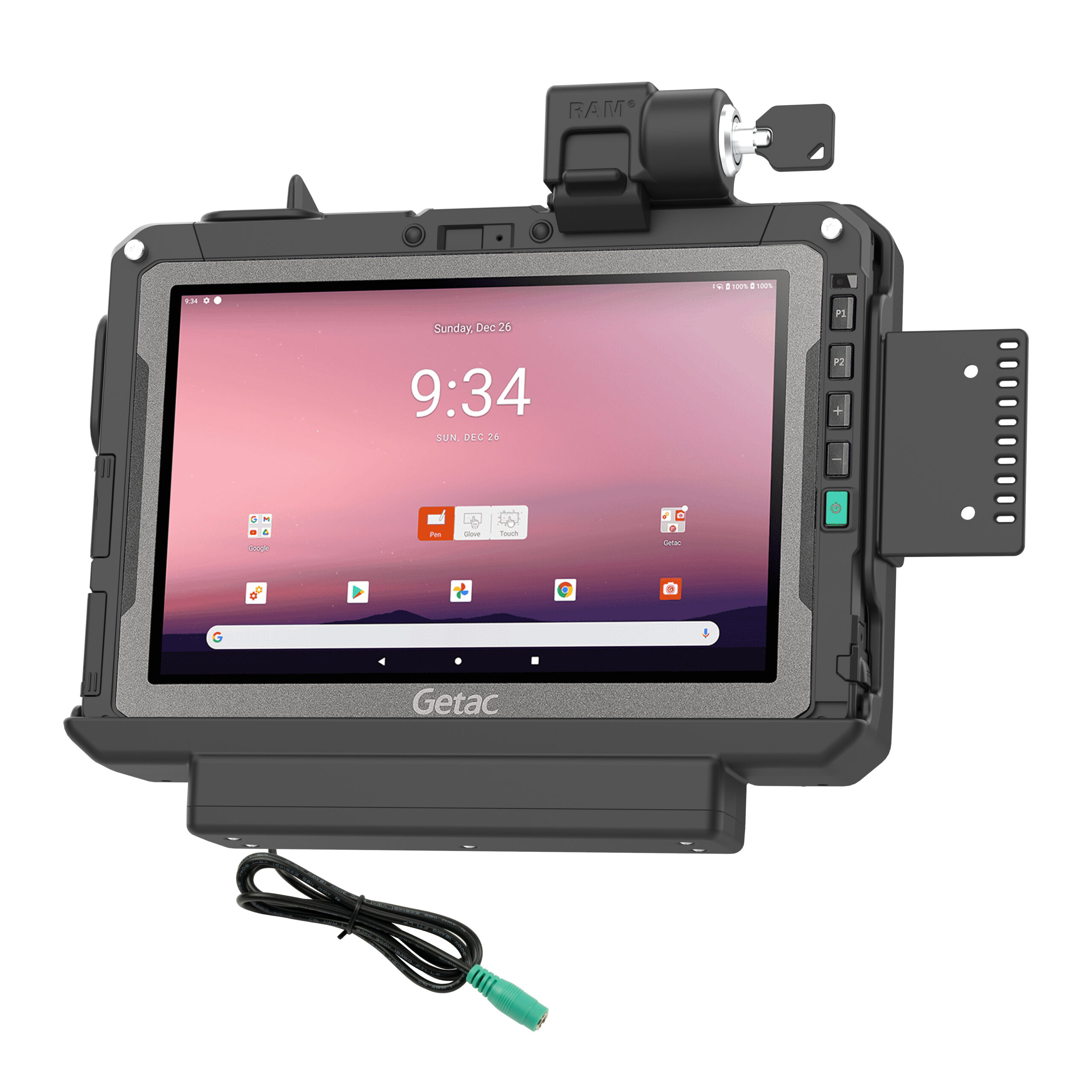 - Key-locking form-fit powered dock designed specifically for the Getac ZX10 rugged tablet includes set of keys for locking capabilities