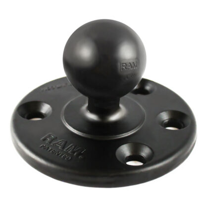 The RAM-240 consists of a 1.5″ diameter rubber ball connected to a flat 3.68″ diameter base. This base has pre-drilled holes that connects to RAM Tough-Dock Powered Docking Stations.