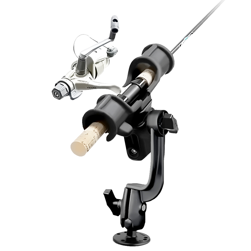 The RAP-370-RBU consists of the RAM ROD Light-Speed fishing rod holder, RAM ROD Revolution ratchet arm with single open socket and 2.5″ diameter round base that contains the universal AMPS hole pattern. Offering the patented RAM rubber ball, socket and ratcheting feature, you can rotate the rod holder 360 degrees, while tilting the rod holder forward and back for the optimum fishing angle. . The RAM ROD Light-Speed is another innovative product in RAMs long list of high quality, industry leading fishing products. Ideally suited for spinning reels and bait casting reels, the Light-Speed rod holder provides smooth action when inserting and removing the fishing rod, yet holds firm in rough water or while trolling. The spring loaded design enables rapid removal of the rod and reel when a fish is on, and offers easy placement of the rod in the rod holder.