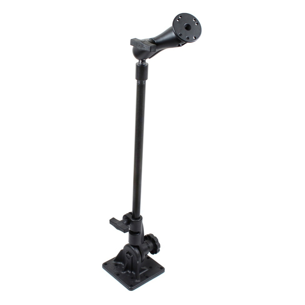 The RAM-101U-VE1 consists of an 18″ long aluminum pipe and C size double socket arm, with a drill-down pedistal base and a 2.5″ diameter round plate with universal AMPS hole pattern.