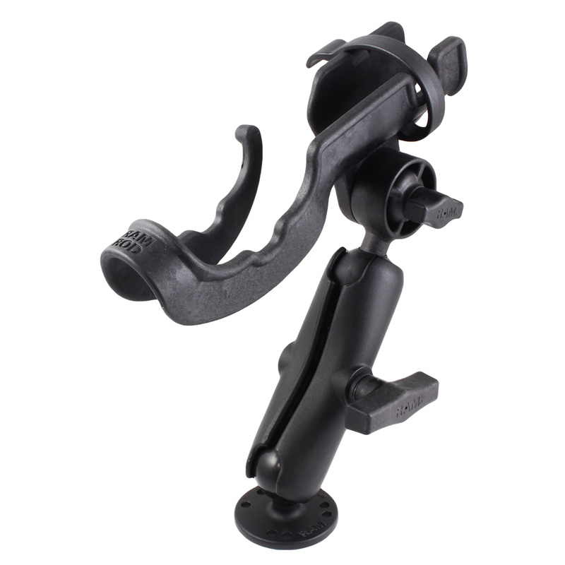 The RAM ROD 2000 fishing rod holder is RAM’s original rod holder. This unique design offers quick removal of the rod when a fish is on, and features a securing flip-over bail for rod security while trolling or for use as rod storage. Utilizing two RAM patented 1.5″ balls, this rod holder offers the ultimate in adjustability and versatility. Ideally suited for kayaks or traditional fishing vessels, this rod holder puts the rod and reel where you need it. Kit includes a 1.5″ ball with a 2.5″ dia. mounting base.