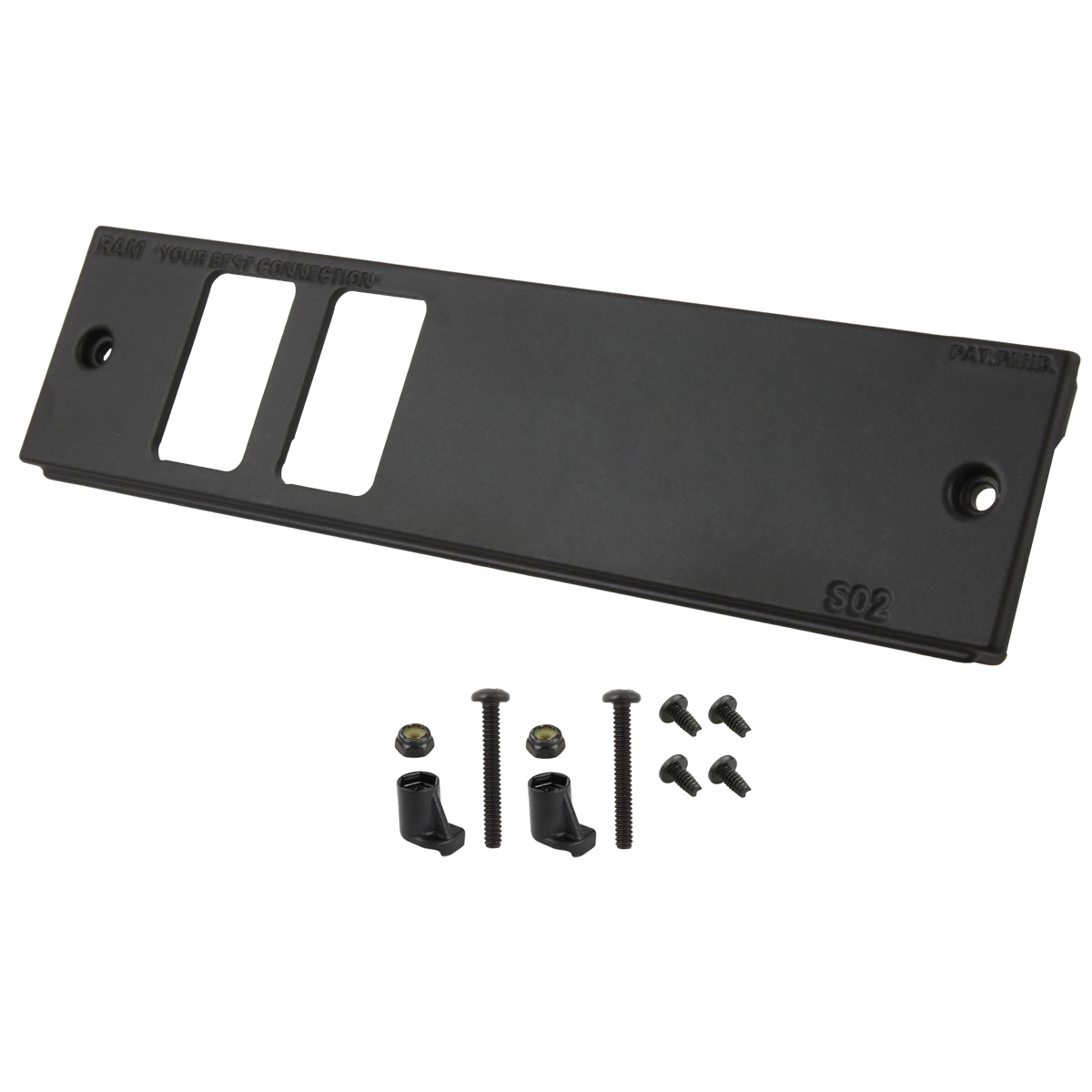 Custom 2″ (2-slot) Switch Faceplate for RAM Tough-Box Consoles. The innovative tongue and groove feature keeps the inside of the console free of contaminants as well as provides a rock solid system once installed into the RAM Tough-Box Console.