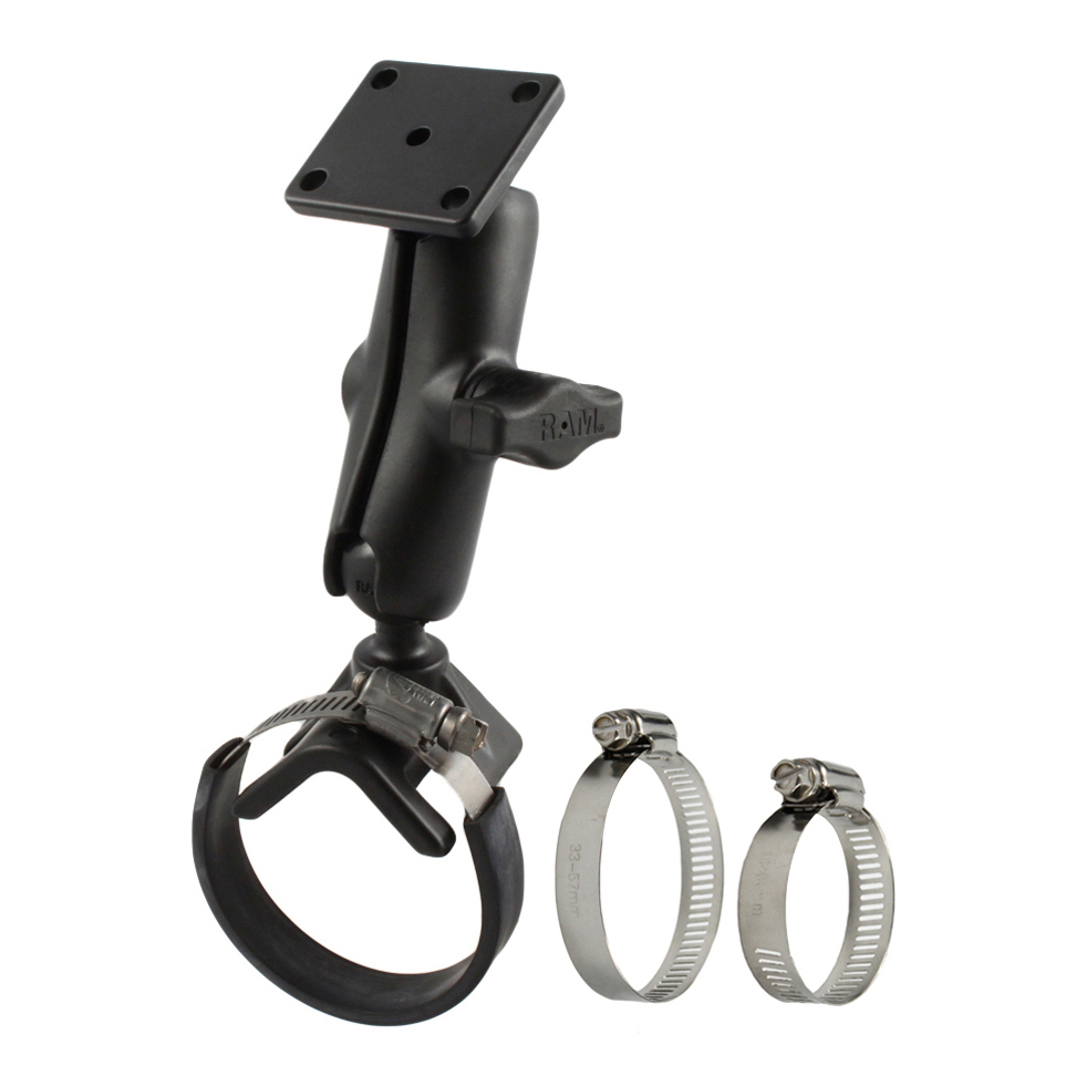 The RAM-B-108-40U consists of a medium length B size arm with a rectangular plate with universal AMPS hole pattern and a strap clamp base that is suitable for rails from 1″ to 3″ in diameter.