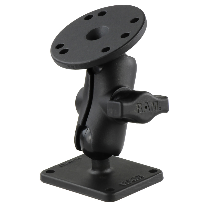 The RAM-B-101U-A-225U consists of a shortl length B-size arm with a 2.5″ diameter round plate with universal AMPS hole pattern and a 2″ x 2.5″ rectangular plate.