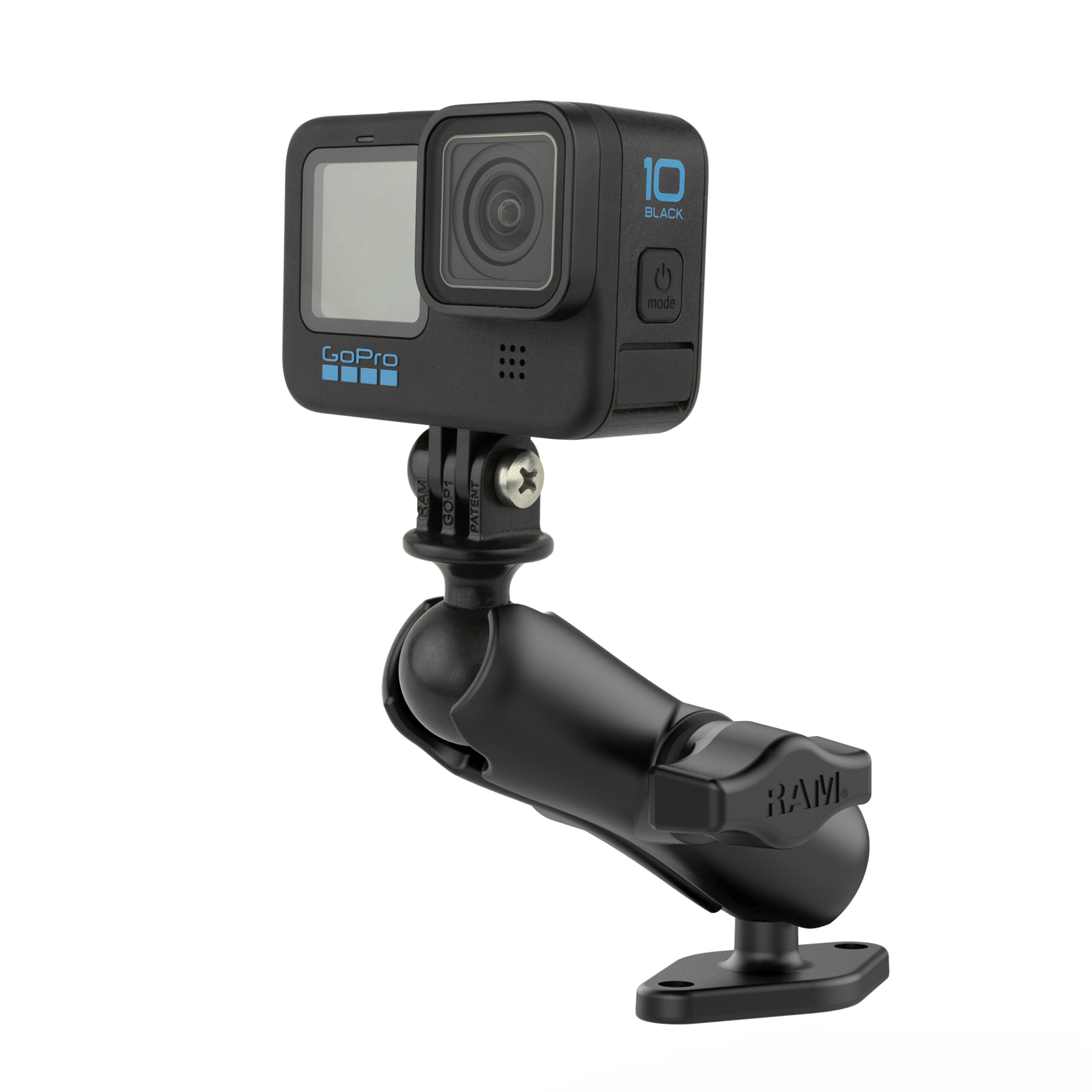 The RAM-B-102-GOP1U consists of a medium length B-size arm with a diamond base with 2 hole AMPS hole pattern and an Action Camera Adapter.